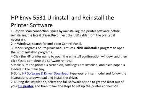 HP Envy 5531 Uninstall and reinstall the printer softwere